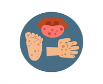 手足口病起病急,潜伏期一般为2~10天,平均为3~5天,感染后会出现发热,手、足和臀部出疹,口腔黏膜或咽峡部出现散在疱疹,伴有咳嗽、流涕、食欲不振、腹泻等症状。部分病例皮疹不典型。少数患者感染后出现神经系统或循环系统损伤的症状。表现为精神萎糜、头痛、眼球震颤或上翻、心率增快、出冷汗、四肢末梢发凉等,病情进展迅速,可致死亡。